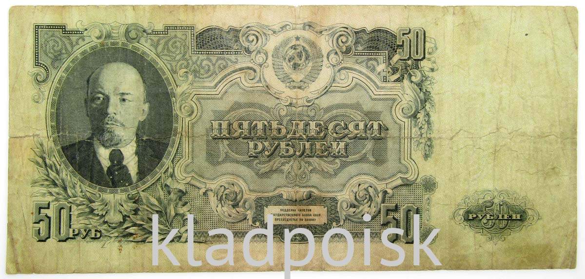 Оборотная сторона: наименование банкноты – «Билет государственного банка СССР», номинал указан цифрами и словами на языках союзных республик. Также на оборотной стороне указан год выпуска «1947», серия и номер красной краской, информация об обеспечении банковских билетов и ответственности за их подделку.