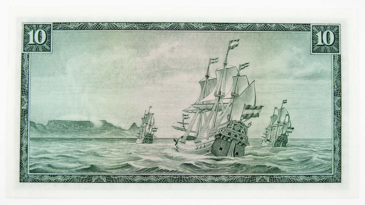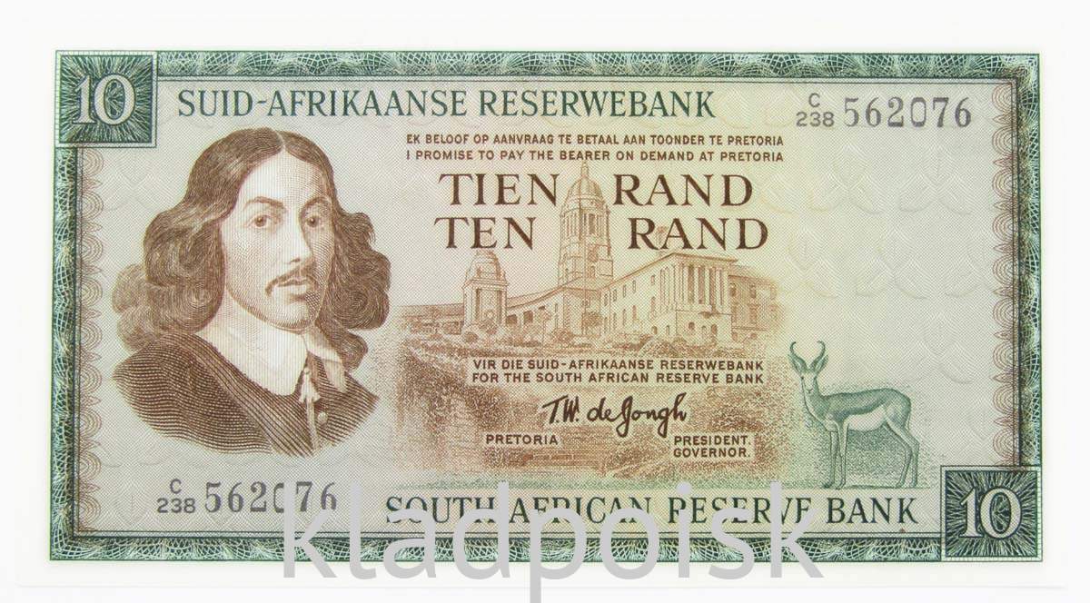Лицевая сторона: Портрет Ян ван Рибека (21 апреля 1619 - 18 января 1677). Союзные здания - британский построенный правительством Капитолий и Мемориал WWI в Претории. Антилопа-прыгун (Antidorcas marsupialis).