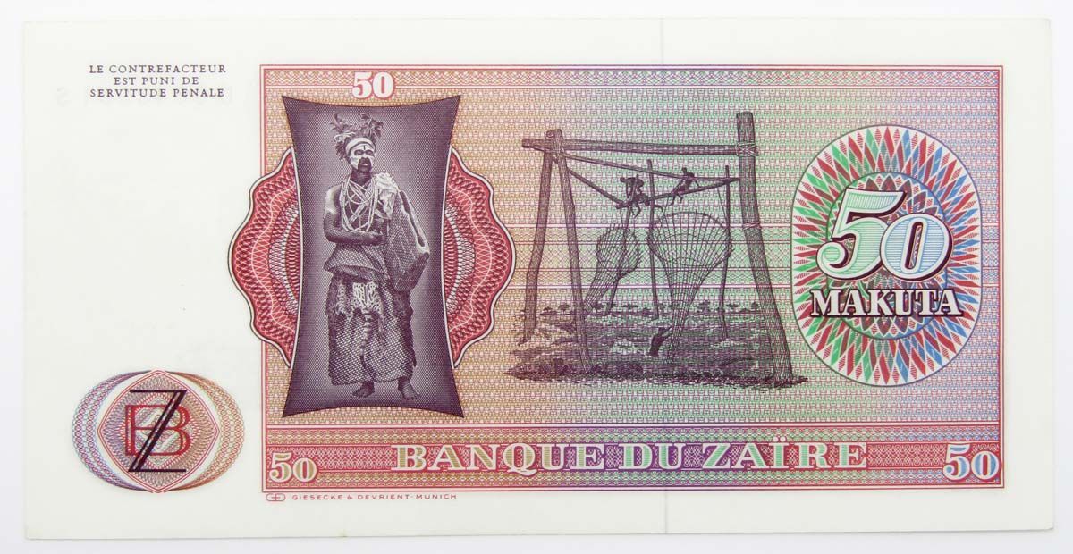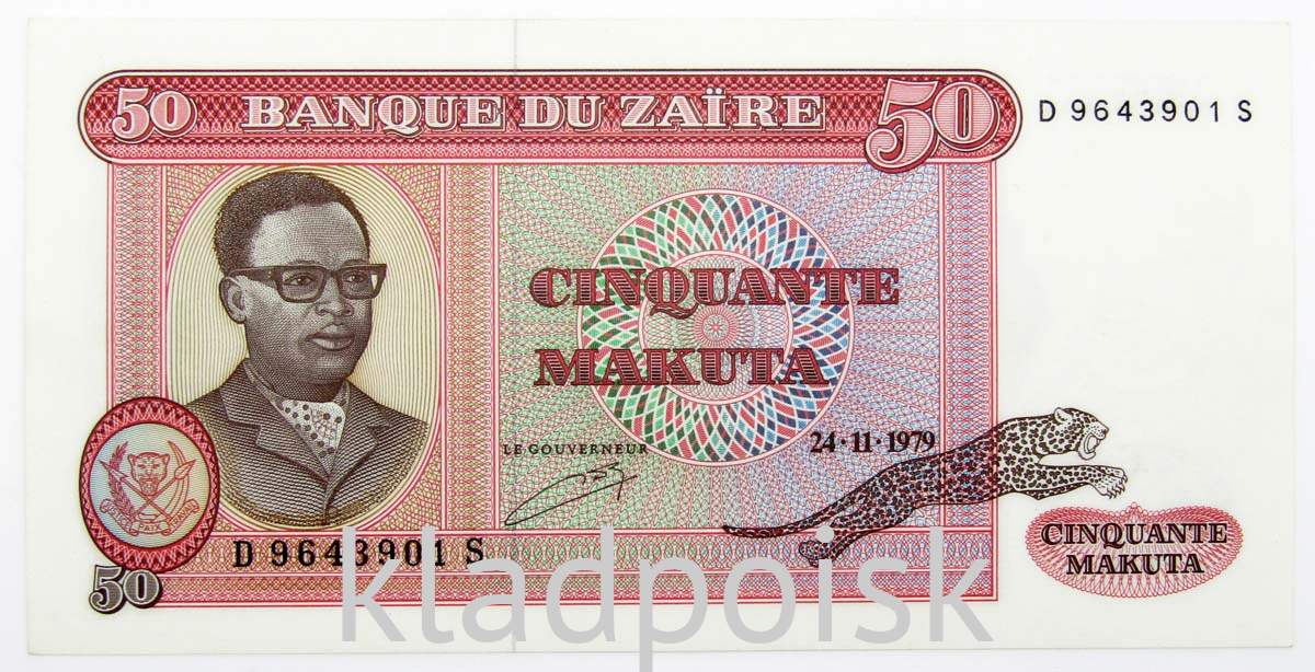 Лицевая сторона: Мобуту Сесе Секо Куку Нгбенду ва за Банга, более известен как Мобуту Сесе Секо или Жозеф-Дезире Мобуту (14 октября 1930 — 7 сентября 1997) — президент Демократической Республики Конго (в 1971 году переименована в Республику Заир) в 1965—1997 годах. Леопард.