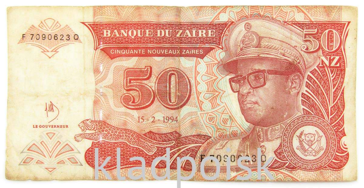 Лицевая сторона: Мобуту Сесе Секо Куку Нгбенду ва за Банга, более известен как Мобуту Сесе Секо или Жозеф-Дезире Мобуту (14 октября 1930 — 7 сентября 1997) — президент Демократической Республики Конго (в 1971 году переименована в Республику Заир) в 1965—1997 годах.