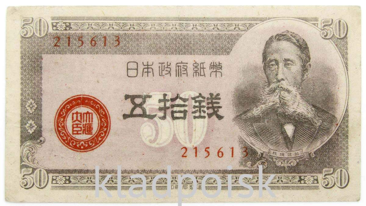Лицевая сторона: Итагаки Тайсукэ (21 мая 1837 — 16 июля 1919) — граф, японский политический, державный и военный деятель.