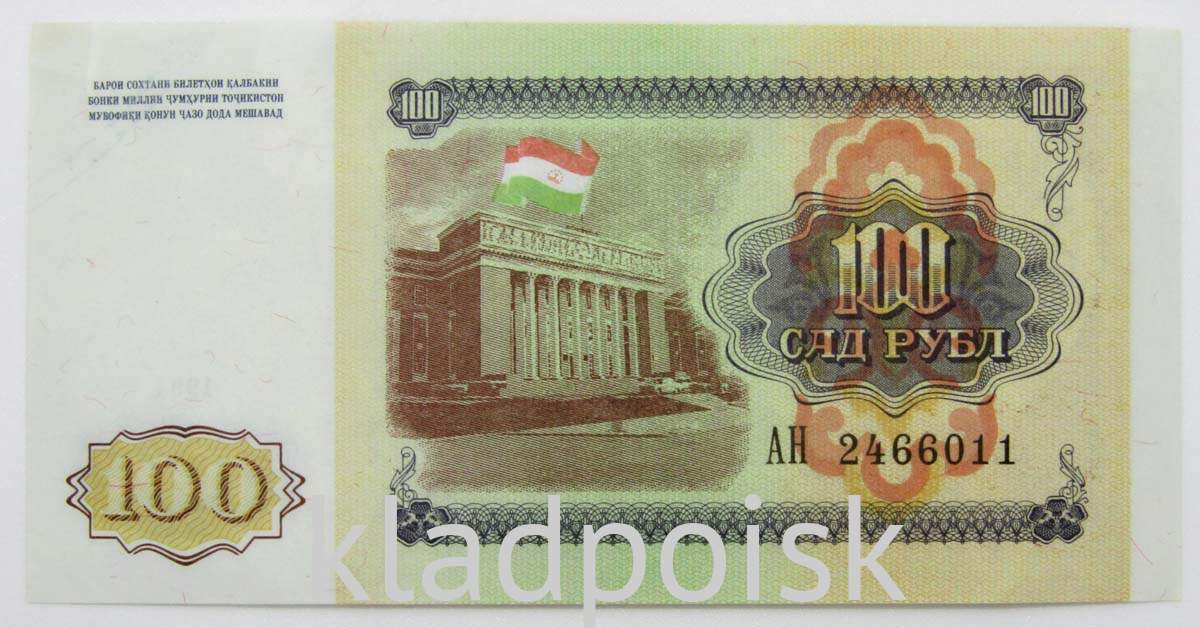 Лицевая сторона: Изображение номинала, название банка-эмитента и герб Таджикистана.