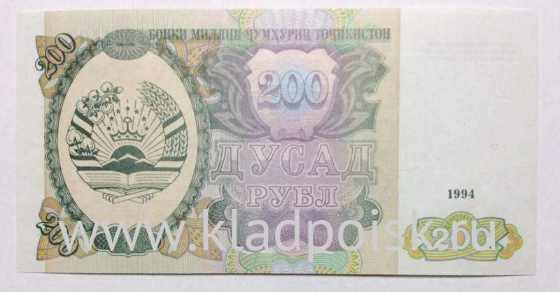 Лицевая сторона: Изображение номинала, название банка-эмитента и герб Таджикистана.