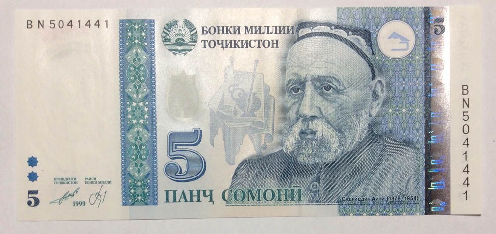 Лицевая сторона: Основоположник современной таджикской литературы Садриддин Айни (1878—1954).