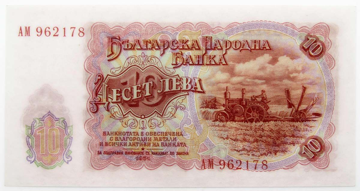 Водяной знак: Заглавные буквы Болгарского народного банка (БНБ) с серпом и молотом