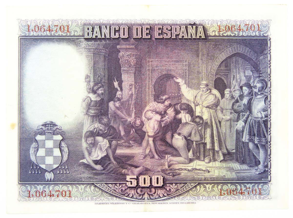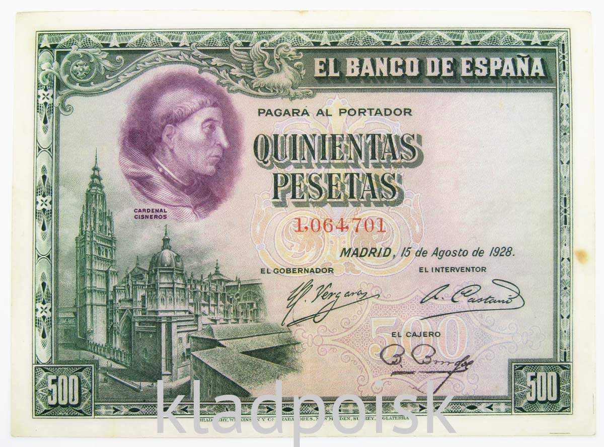 Банкнота 500 песет 1928 года Испания. На фото оригинал (товар в единственном экземпляре).