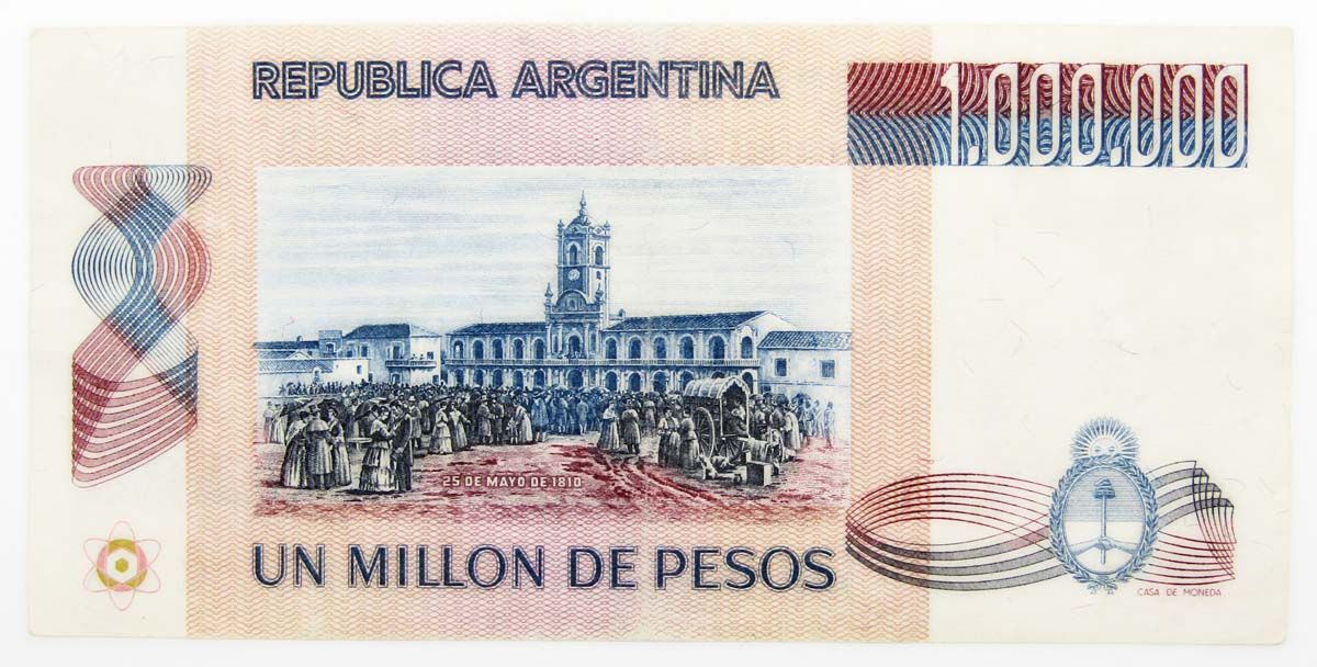 На оборотной стороне боны 1000000 песо Аргентина: Картина "25 мая 1810 года".