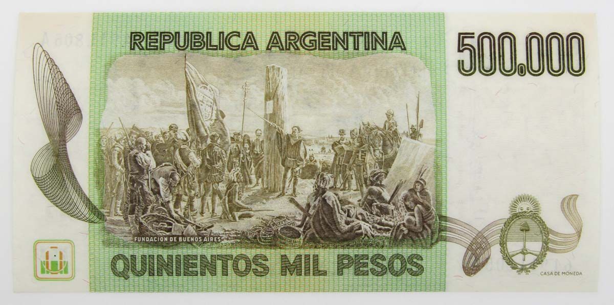 На оборотной стороне боны 500 000 песо Аргентина: Сцена основания Буэнос-Айреса.