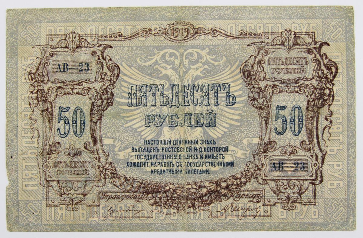 В 1918 году контрреволюционные организации Ростова-на-Дону берут под контроль местную контору Государственного Банка, которая начинает выдавать населению денежные знаки собственного производства. Данные денежные знаки должны были стать временными, о чём свидетельствовала надпись "имеет хождение наравне с кредитными билетами".
