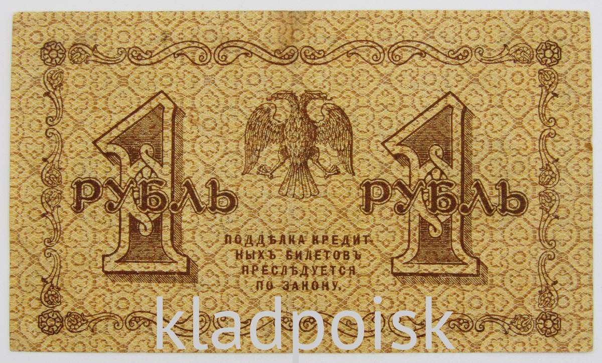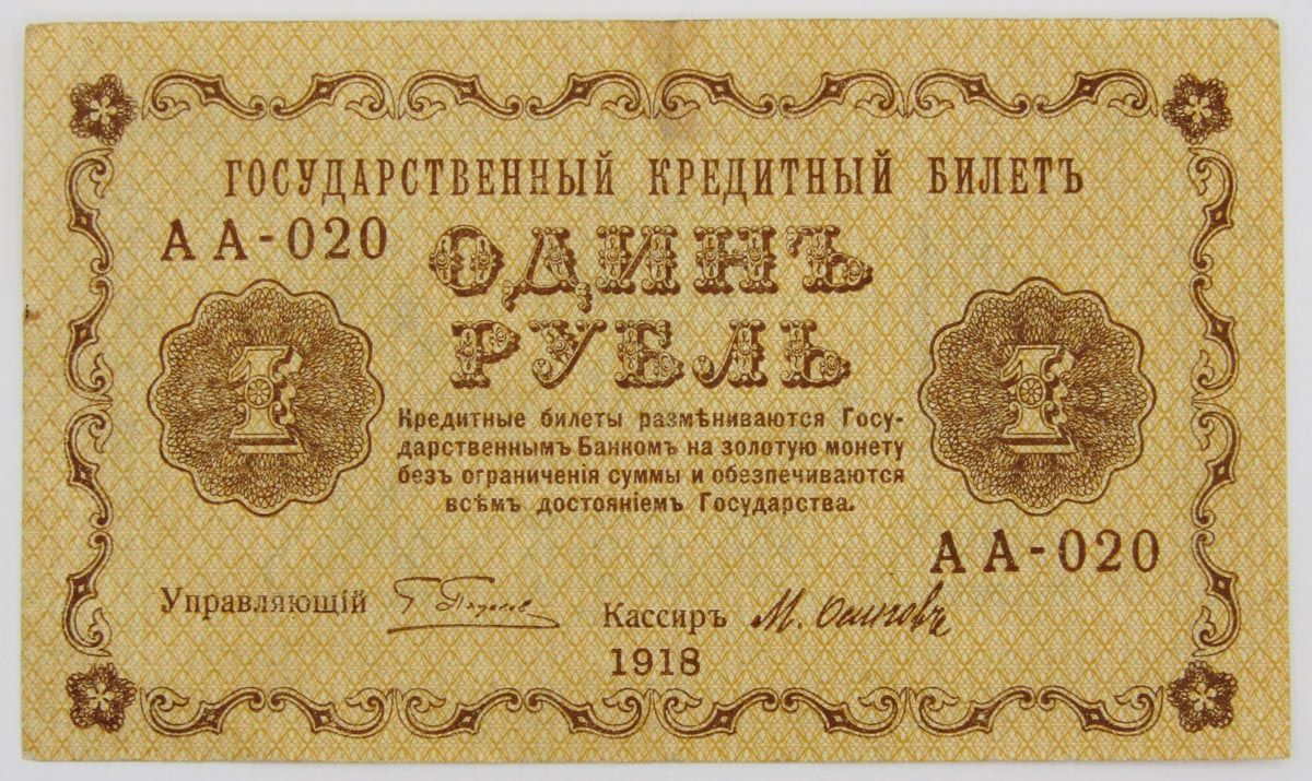 Банкнота 1 рубль1918 года печаталась Народным банком РСФСР до 1922 года.