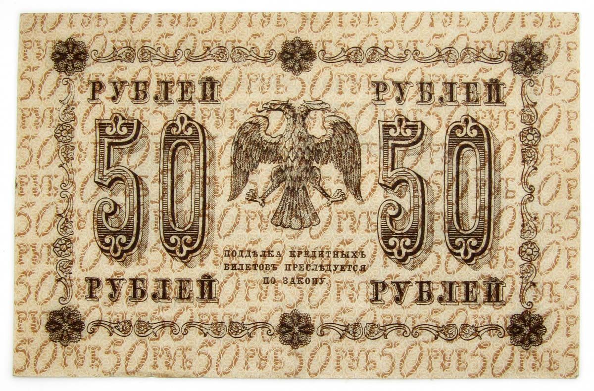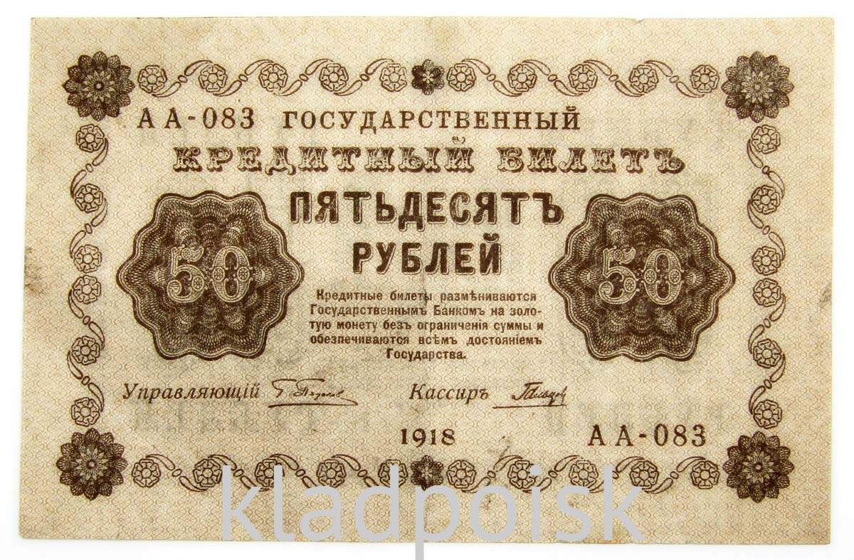 Государственный кредитный билет 50 рублей 1918 года печатался Народным банком РСФСР до 1922 года.