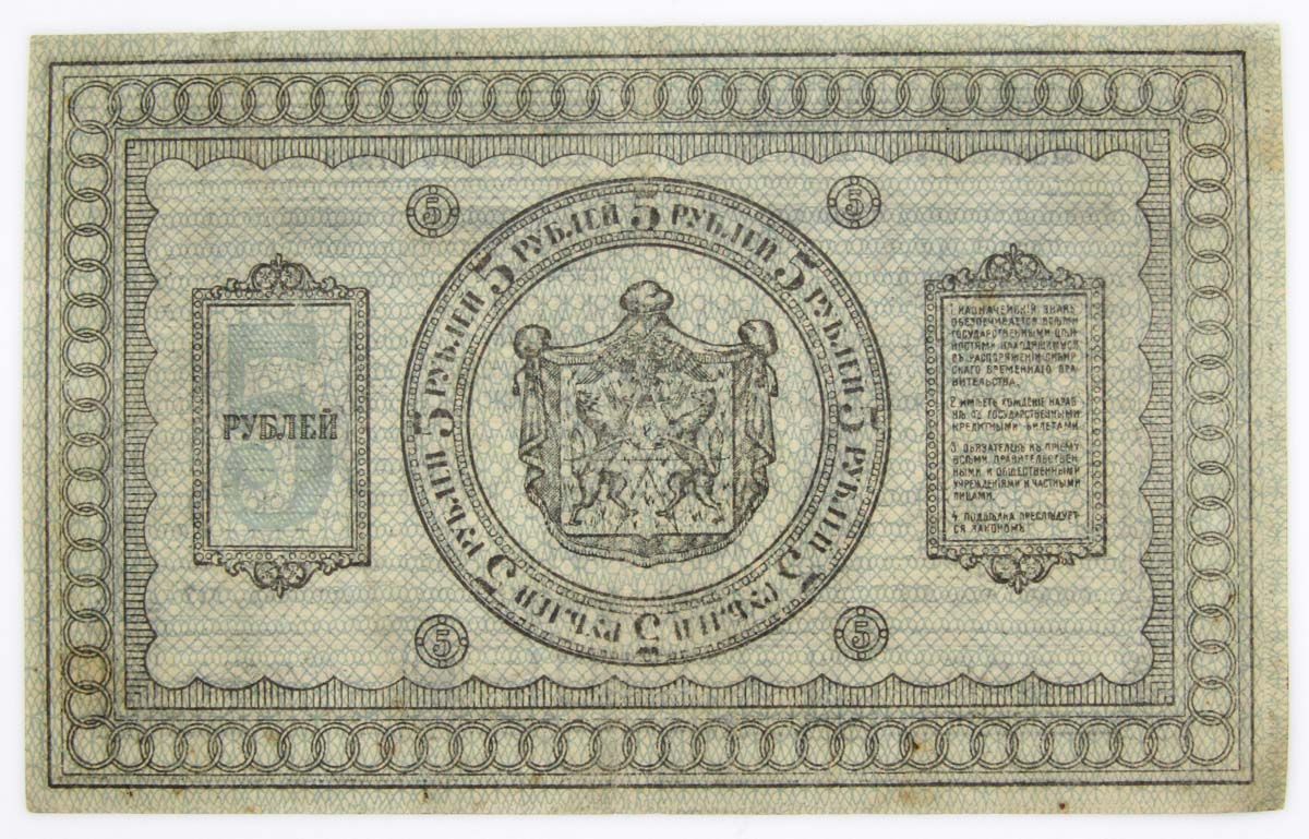 Производство пятирублёвых казначейских знаков было начато 31 октября 1918 г. в Иркутске во временном отделении Экспедиции заготовления государственных бумаг, созданном тремя днями ранее при военно-топографическом отделе штаба Иркутского военного округа.