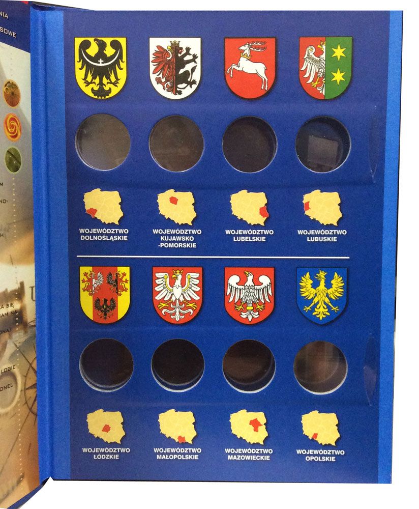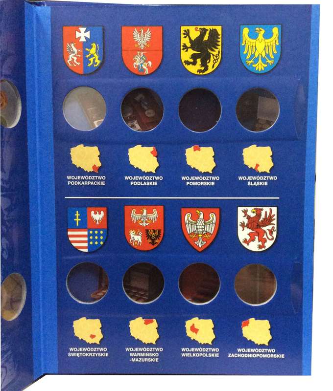 Альбом предназначен для хранения 16 монет серии «Гербы Воеводств».