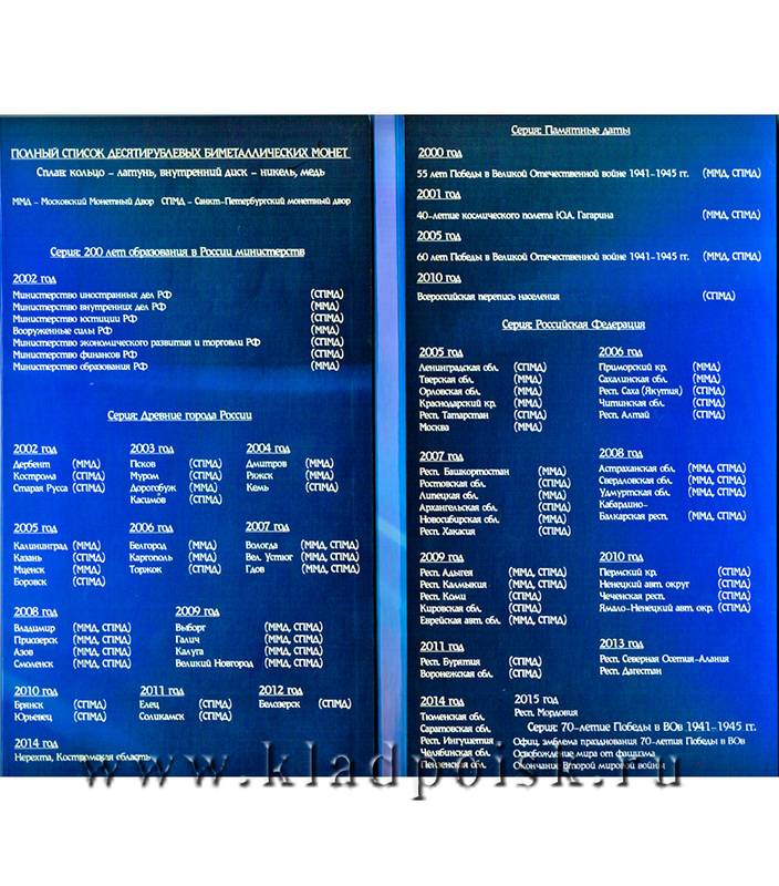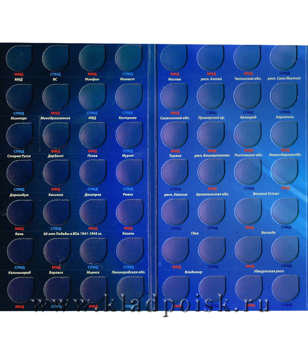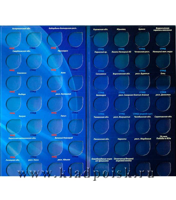 Альбом-раскладушка из плотного картона с ячейками под монеты, ячейки подписаны, состоит из четырёх листов.