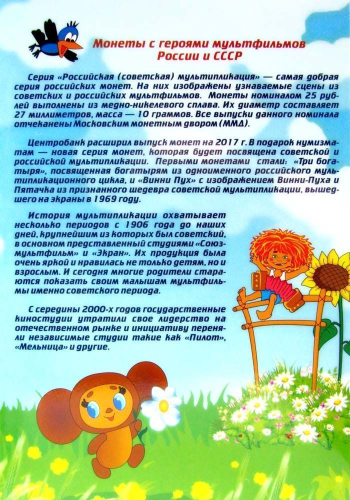Альбом для коллекции памятных монет России номиналом 25 рублей серии «Российская и советская мультипликация».