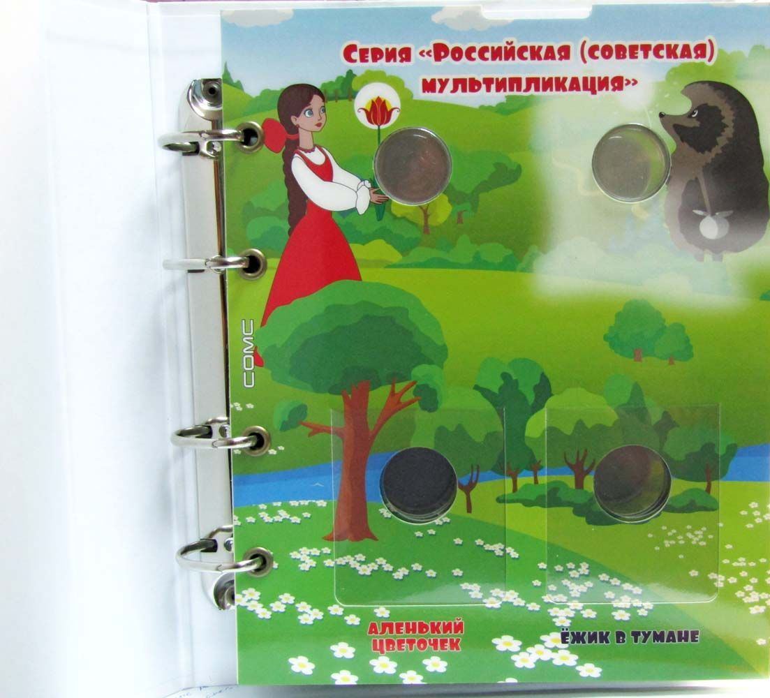 Альбом-папка с 7 листами для коллекции памятных монет России номиналом 25 рублей 2017–2024 гг., серии «Российская (советская) мультипликация», в том числе под цветные монеты в блистерах.