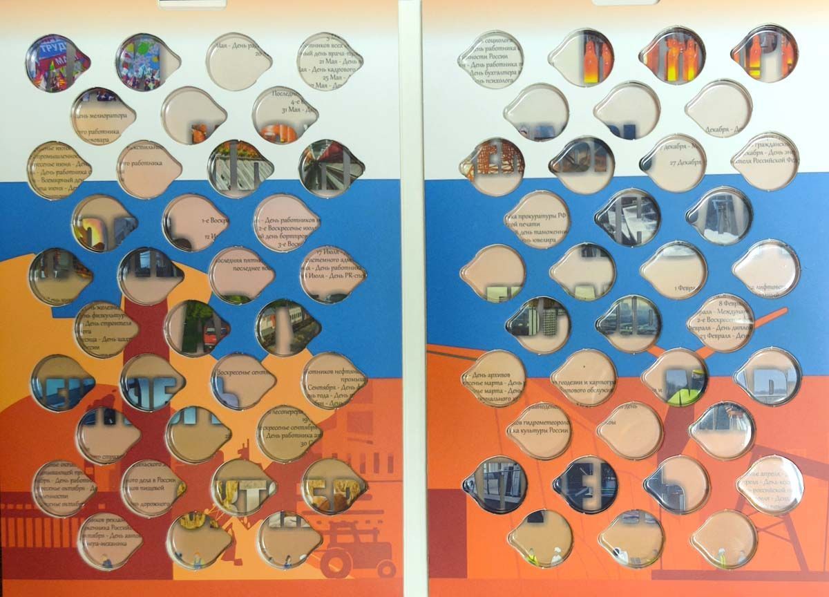 Альбом-раскладушка из плотного картона с ячейками под монеты, состоит из 4 листов.