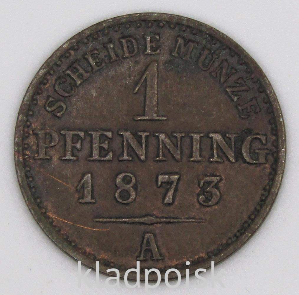 Монета регулярного выпуска 1 пфенниг Германии, 1873 год, характеристики: