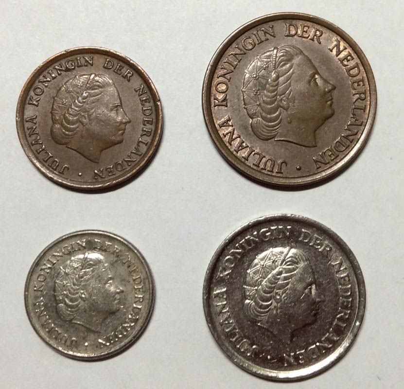 Набор монет Нидерландов Королева Юлиана 1950-1980 состоит из 4 монет: