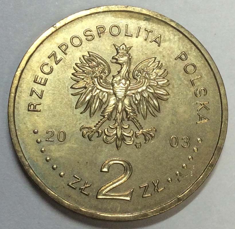 На аверсе: изображение орла, государственного герба Республики Польши. Над орлом надпись, RZECZPOSPOLITA POLSKA и год чеканки 2003. Под правой ногой орла марка монетного двора, М./W.