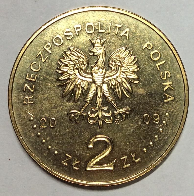 На аверсе монеты Тшебница изображен Герб страны, вверху надпись полукругом: RZECZPOSPOLITA POLSKA, внизу год выпуска 2009, номинал монеты 2 злотых и знак Монетного двора Варшавы M/W.