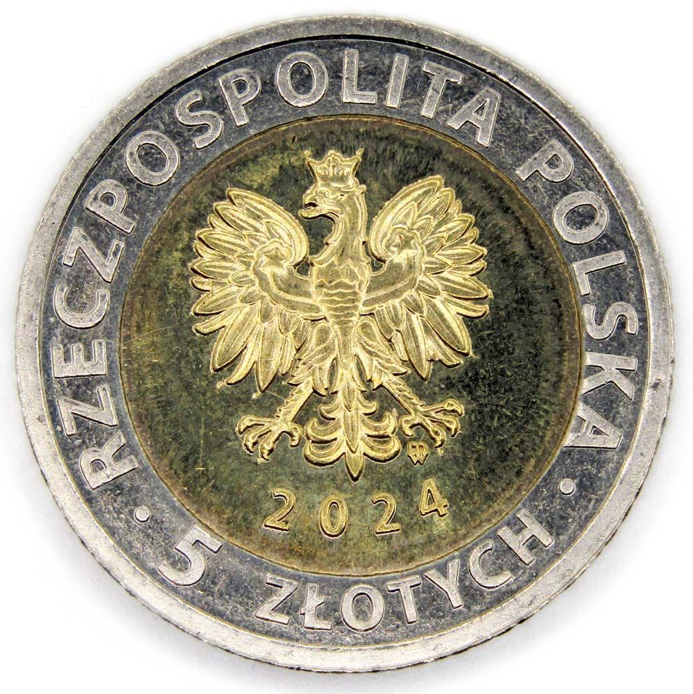Аверс: В центре – герб страны: коронованный польский орёл, возле правой ноги орла – знак монетного двора, под орлом – год выпуска. Круговая надпись сверху: RZECZPOSPOLITA POLSKA; круговая надпись снизу, указывающая номинал: 5 ZLOTYCH.