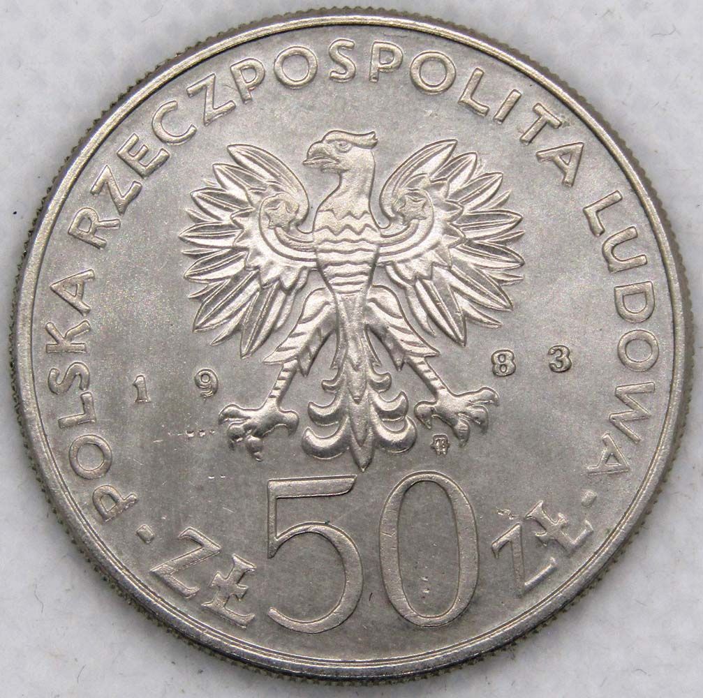 - Номинал монеты: 50 zlote (злотый)