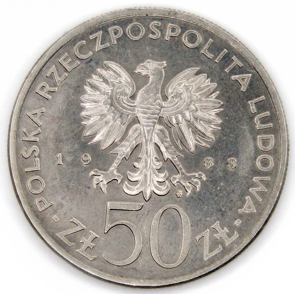 - Номинал монеты: 50 zlote (злотый)