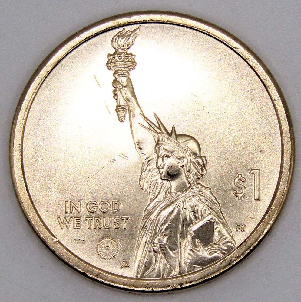Аверс: изображение Статуи Свободы в профиль с надписями «IN GOD WE TRUST» и «1 доллар».