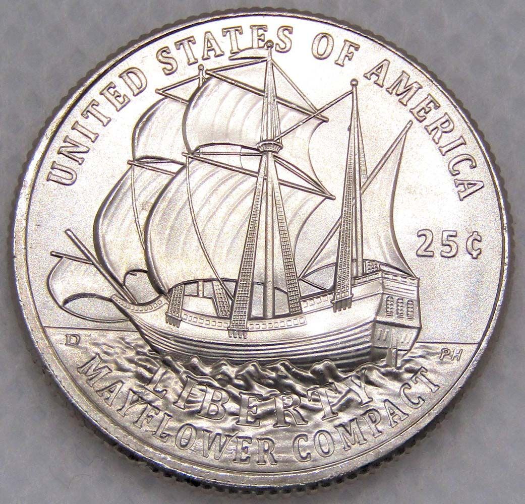 Монета посвящена документу о самоуправлении, который пилигримы подписали на борту корабля «Мэйфлауэр» в 1620 году. «Мэйфлауэрское соглашение» считается предшественником Декларации независимости и Конституции США.