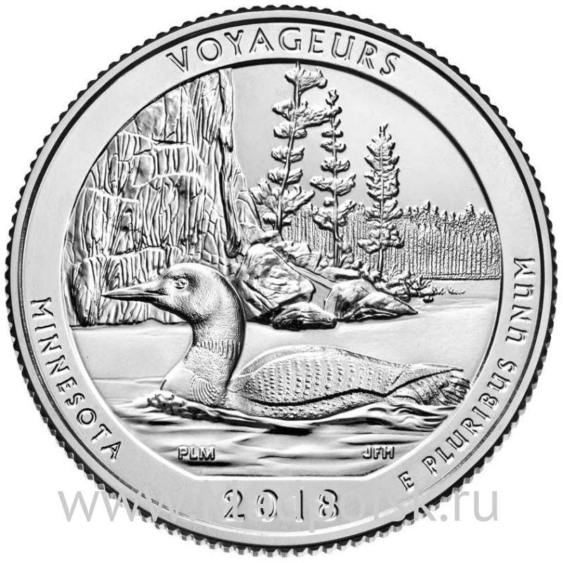 Монета 25 центов США Национальный парк Вояжерс - 43я монета серии «Прекрасная Америка» (Национальные парки США).