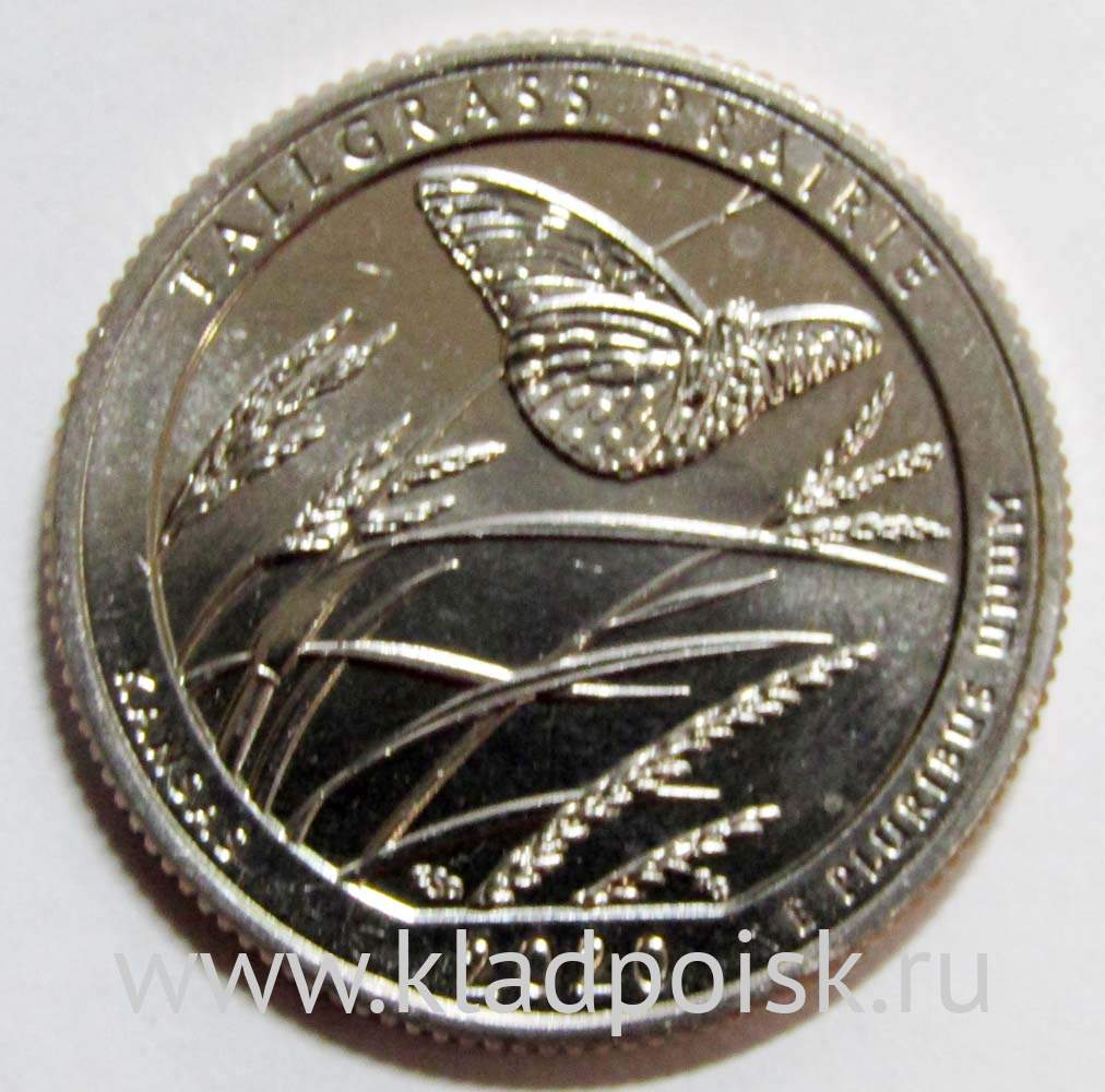 Монета 25 центов США Национальный заказник Таллграсс Прейри 55я монета из серии «Прекрасная Америка» (Национальные парки США).