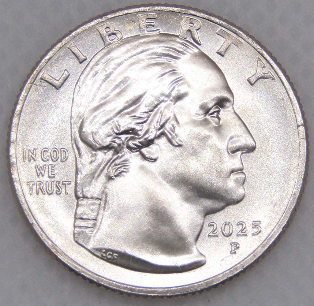 На аверсе: В центре располагается профильный портрет Джорджа Вашингтона. Вверху расположена надпись “LIBERTY”. Слева выгравирована надпись “IN GOD WE TRUST”, в правой нижней части монеты указан год эмиссии «2024», ниже указан монетный двор.