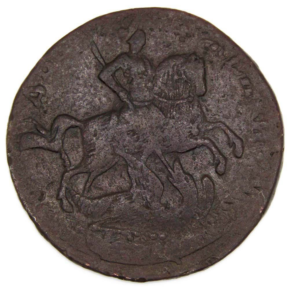 Аверс: в центре вензель Елизаветы I, состоящий из букв «EP» (Елизавета Петровна), вверху императорская корона. По двум сторонам от вензеля находится год выпуска «1758». Слева вдоль края монеты – дубовая ветвь, справа – лавровая, снизу они перевязаны лентой.