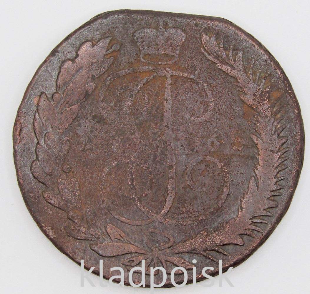 Реверс: В центре изображён вензель Екатерины II. Над вензелем — императорская корона. По обеим сторонам от вензеля цифры даты выпуска монеты: слева — «17», справа — «68» (1768 год). Вокруг центрального изображения, вдоль канта, изображён венок из лавровой и пальмовой ветвей, которые, в нижней части, перевязаны лентой на узел бантом.
