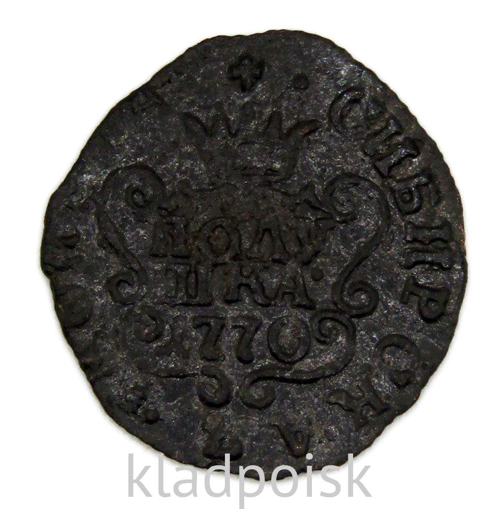 Реверс: В центре изображен картуш с надписью в две строки: «ПОЛУ"│"ШКА•", под надписью дата выпуска — «1770». Над картушем — царская корона, над ней — четырёхлистная цветочная розетка. По окружности, вдоль канта, надпись: «СИБИРСКАЯ•МОНЕТА".