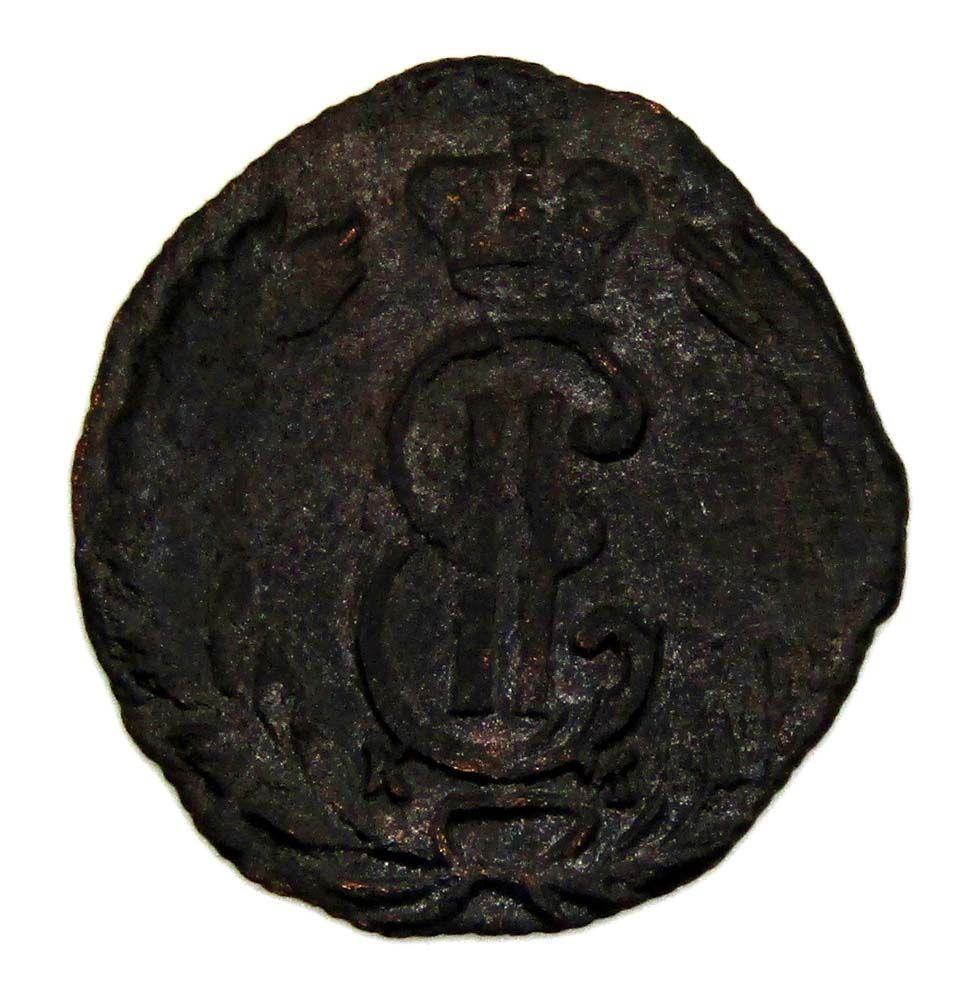 Аверс: В центре — вензель Екатерины II. Над ним императорская корона. Под вензелем обозначение Сузунского монетного двора — буквы «К М». Вокруг центрального изображения, вдоль канта, изображён венок из лавровой и пальмовой ветвей, которые, в нижней части, перевязаны лентой на узел бантом.