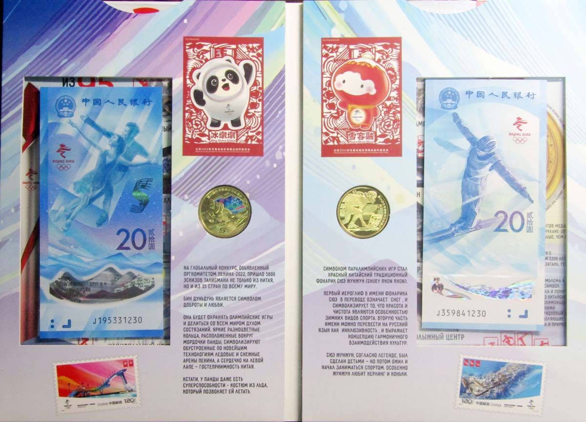 Боны номиналом 20 юаней 2021 Олимпиада в Пекине: Фигурное катание, Фристайл. Качество ПРЕСС.