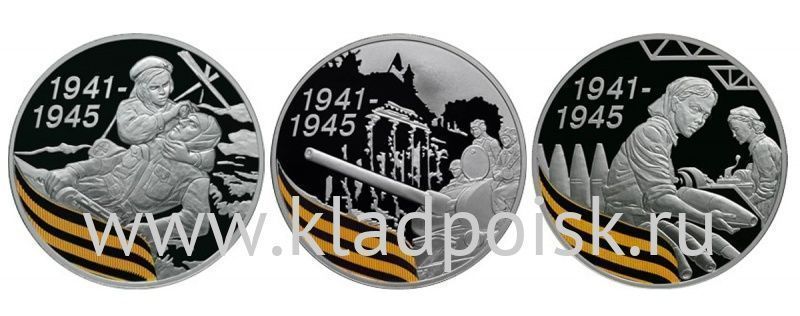 Набор монет 3 рубля, серебро «65 лет Победы», состав: