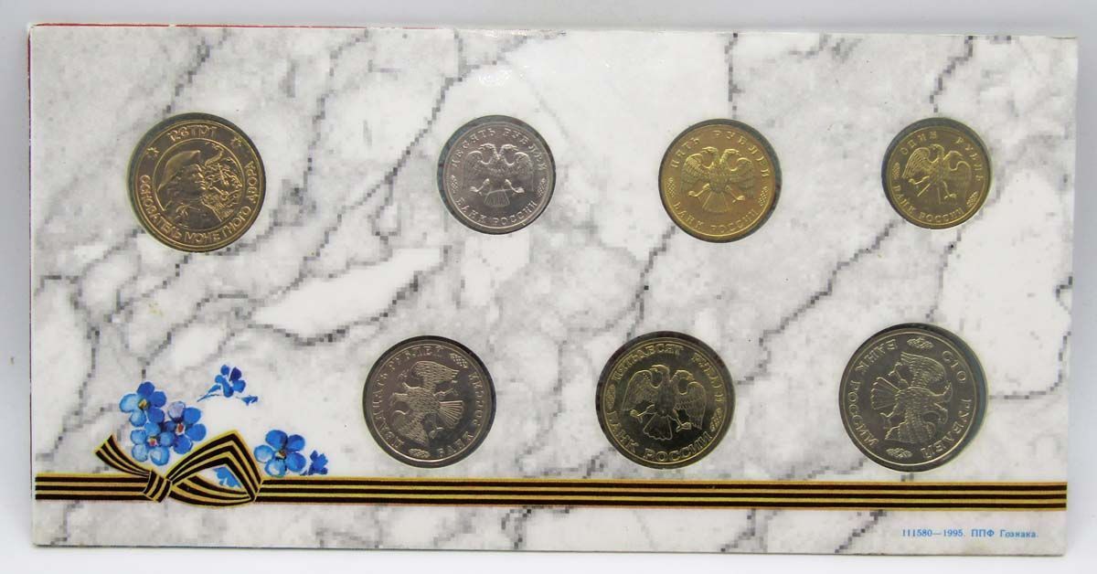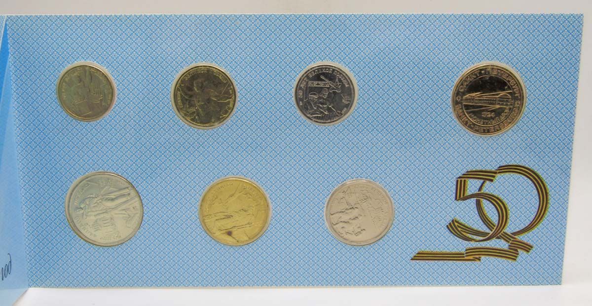 Буклет заполнен шестью монетами и одним жетоном: