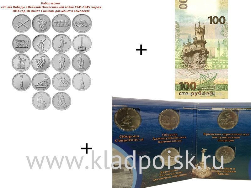 - Набор монет серии «70-лет Победы в Великой Отечественной войне 1941-1945 гг.» (18 монет в альбоме) - 1490 руб.