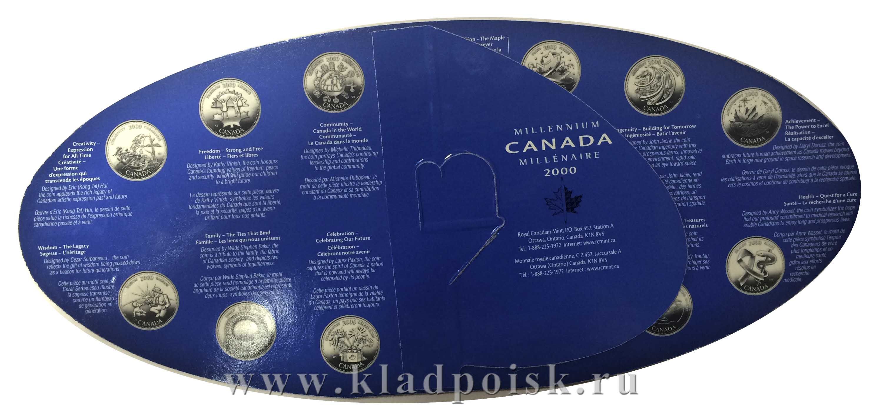 Набор монет Канада 25 центов «Миллениум», состав: