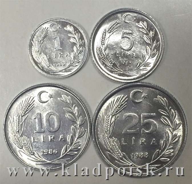 Набор монет Турция 1981-1988 состоит из 4 монет: