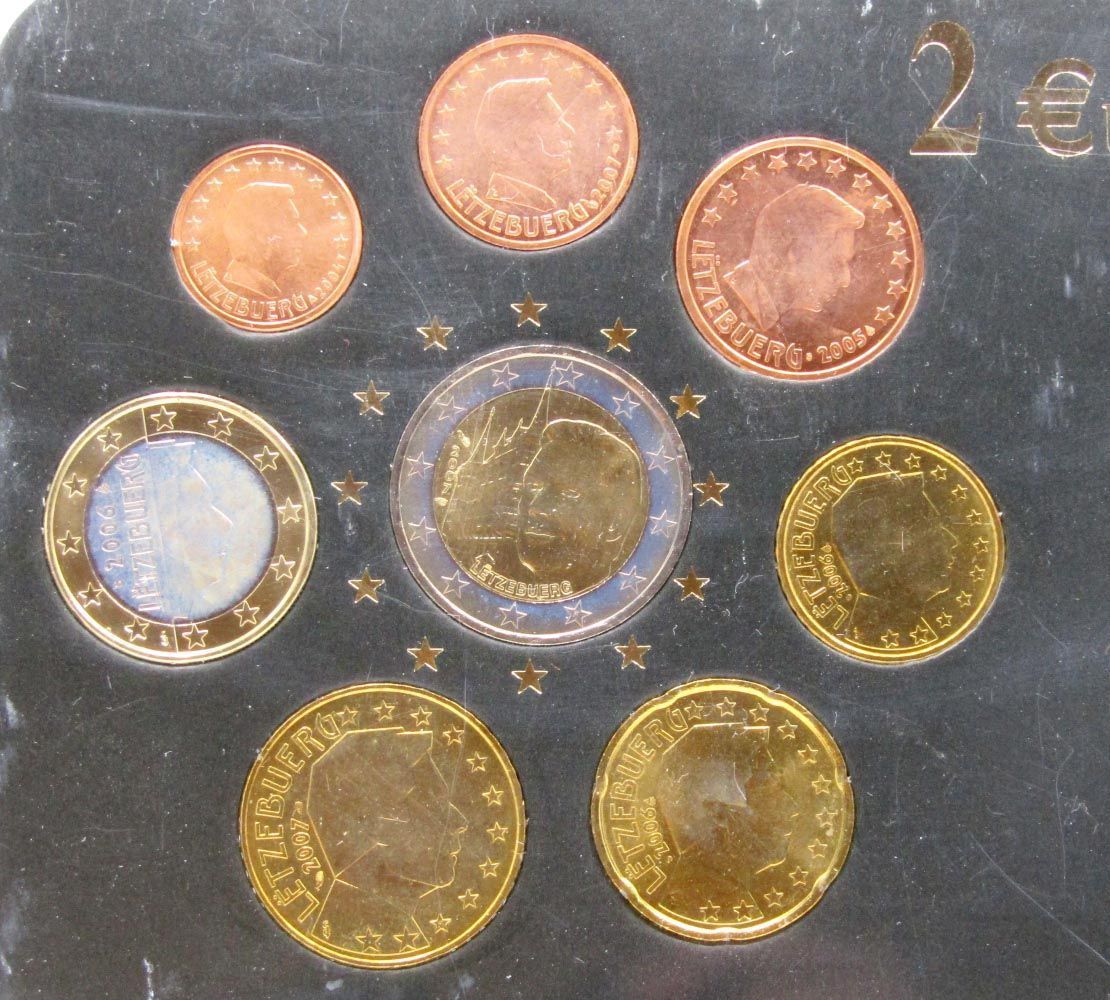 Евро монеты Люксембурга вошли в обращение в 2002 году. В данный набор вошли монеты, выпущенные в 2004-2007 гг.