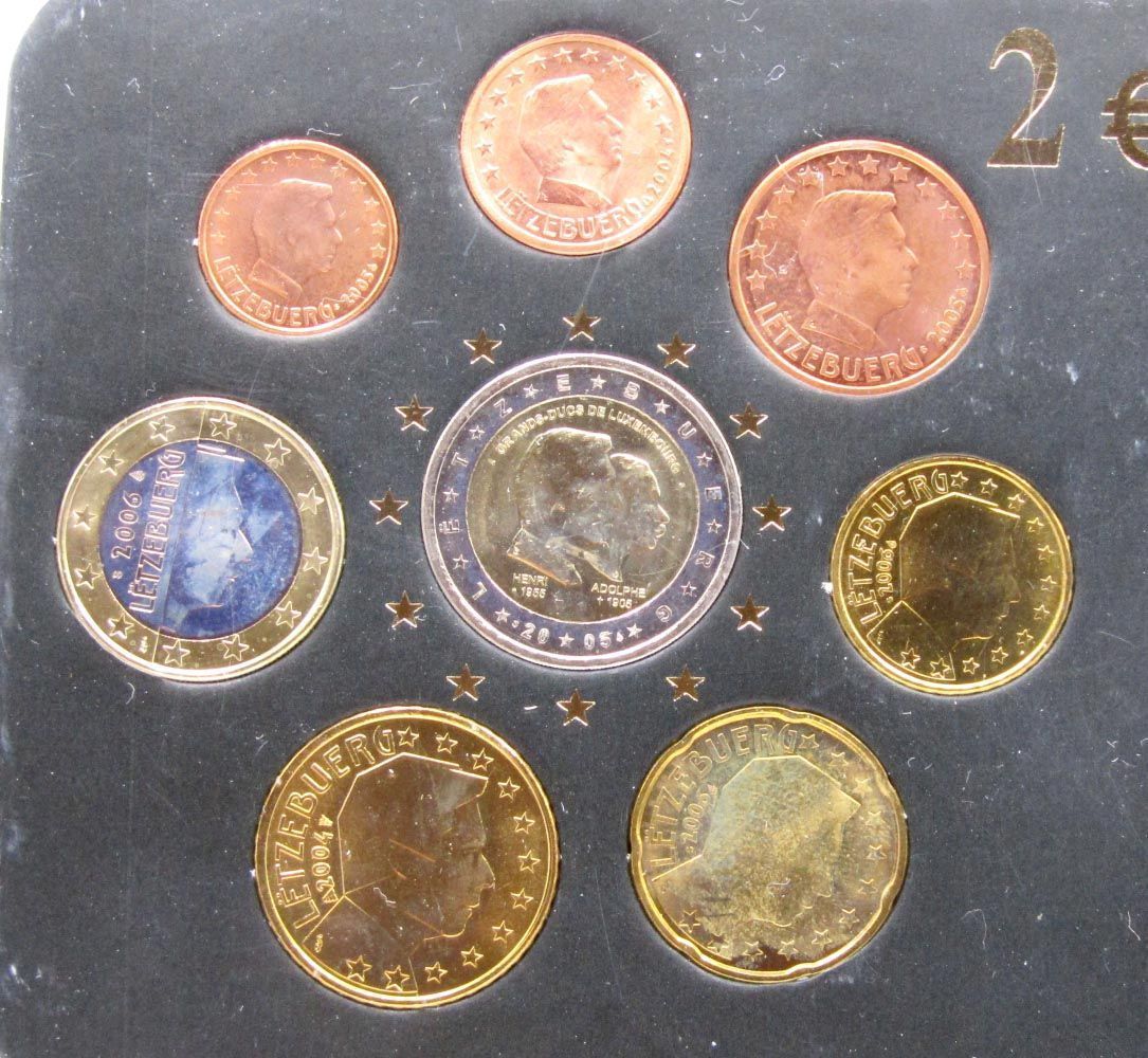 Евро монеты Люксембурга вошли в обращение в 2002 году. В данный набор вошли монеты, выпущенные в 2005-2006 гг.