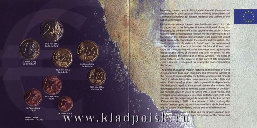 Официальный годовой набор монет Латвии евро 2014 – замечательное вложение средств. Официальный буклет выпущен малым тиражом.