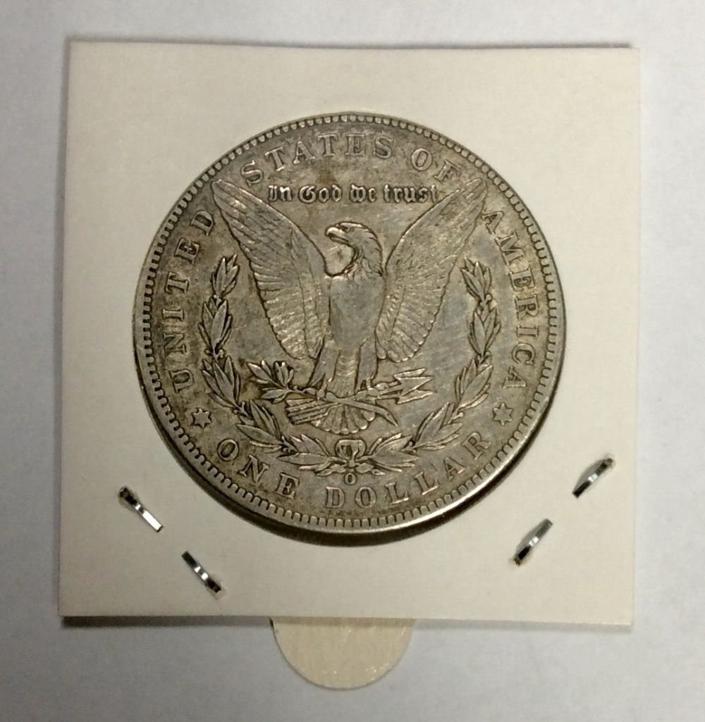 На реверсе монеты «Моргановский доллар» изображен белоголовый орлан, геральдическое изображение Североамериканских Соединенных Штатов Америки. Он держит в лапах оливковую ветвь и пучок стрел, вокруг венок из оливковых ветвей, под узлом венка знак монетного двора (отсутствует для монет, отчеканенных в Филадельфии). Над орлом надпись готическим шрифтом «In God We Trust». Круговая надпись: вверху «United States of America», внизу «One Dollar».