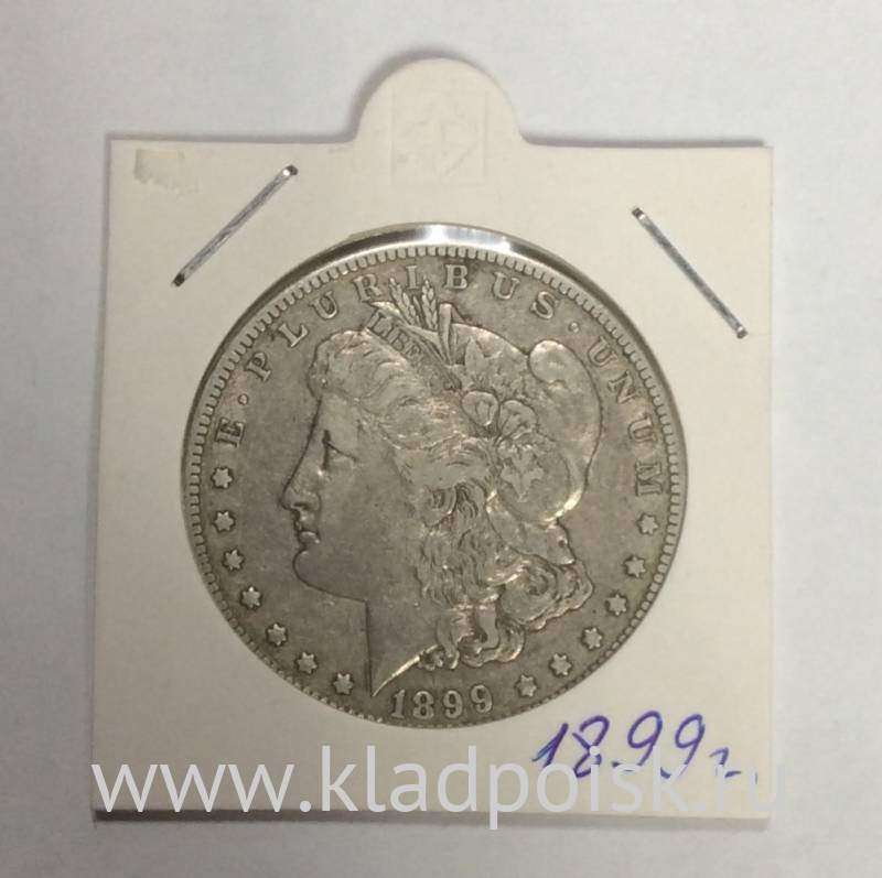 На аверсе монеты 1 доллар Моргана США Серебро изображена голова Свободы во фригийском колпаке с венцом-диадемой и круговом венке из ветки хлопка и колосьев пшеницы, над её головой латинский девиз: «E pluribus unum», внизу дата.