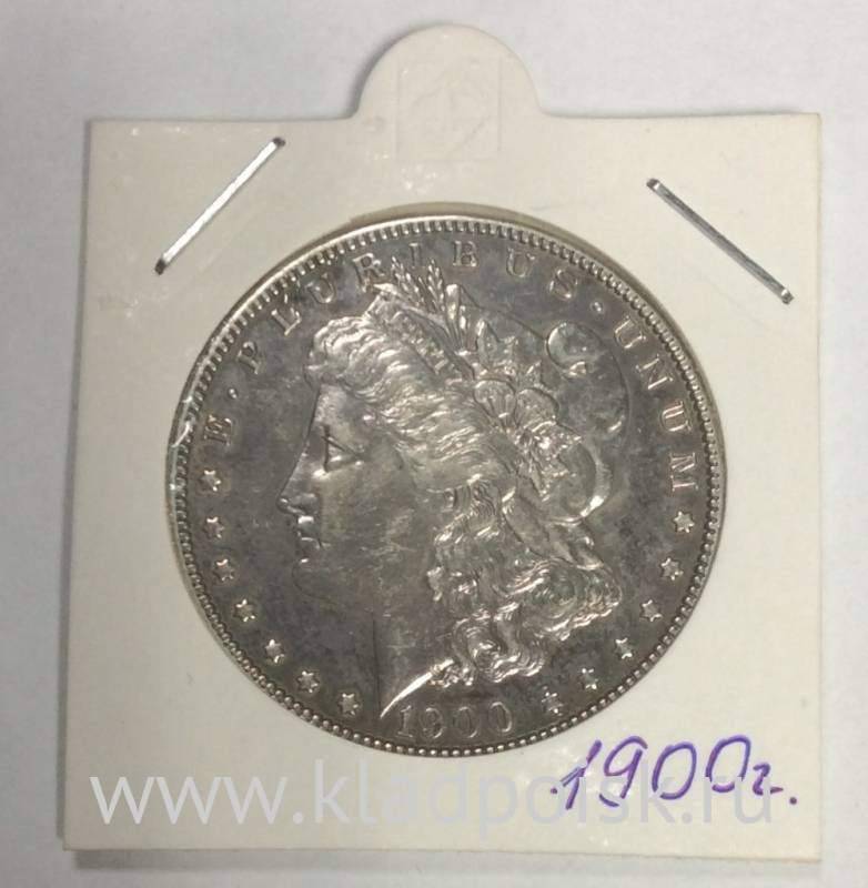 На аверсе монеты 1 доллар Моргана США Серебро изображена голова Свободы во фригийском колпаке с венцом-диадемой и круговом венке из ветки хлопка и колосьев пшеницы, над её головой латинский девиз: «E pluribus unum», внизу дата.