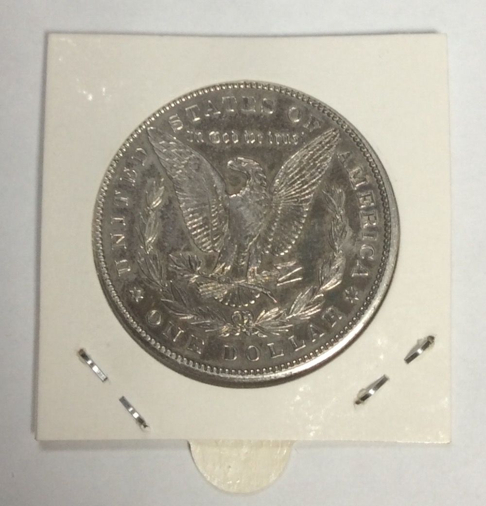 На реверсе монеты «Моргановский доллар» изображен белоголовый орлан, геральдическое изображение Североамериканских Соединенных Штатов Америки. Он держит в лапах оливковую ветвь и пучок стрел, вокруг венок из оливковых ветвей, под узлом венка знак монетного двора (отсутствует для монет, отчеканенных в Филадельфии). Над орлом надпись готическим шрифтом «In God We Trust». Круговая надпись: вверху «United States of America», внизу «One Dollar».